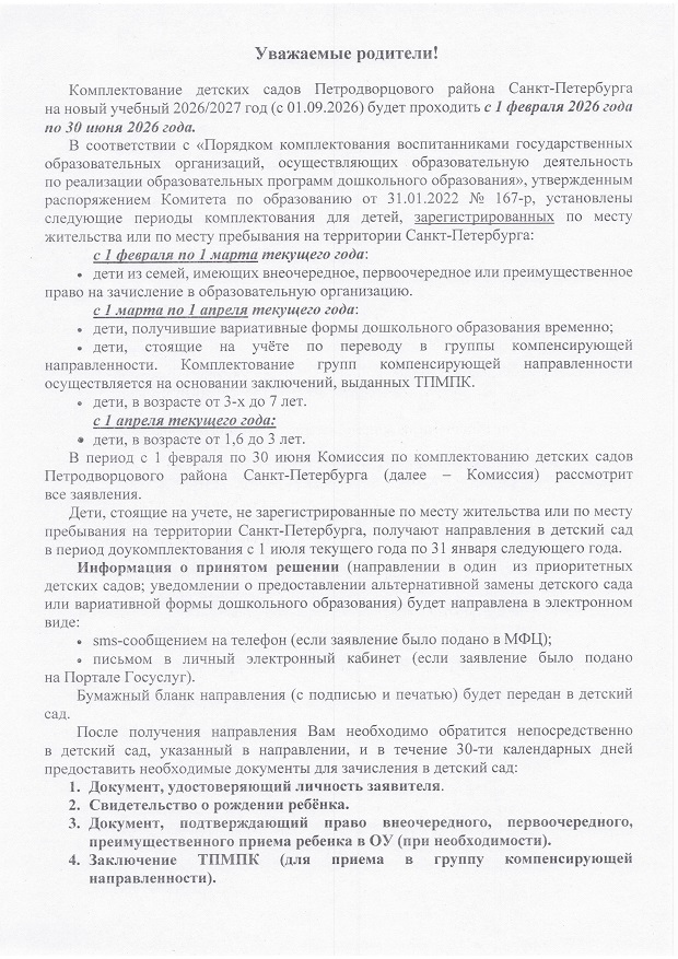 Зачисление детей в образовательное учреждение с 01.09.2026 (предварительный прием)